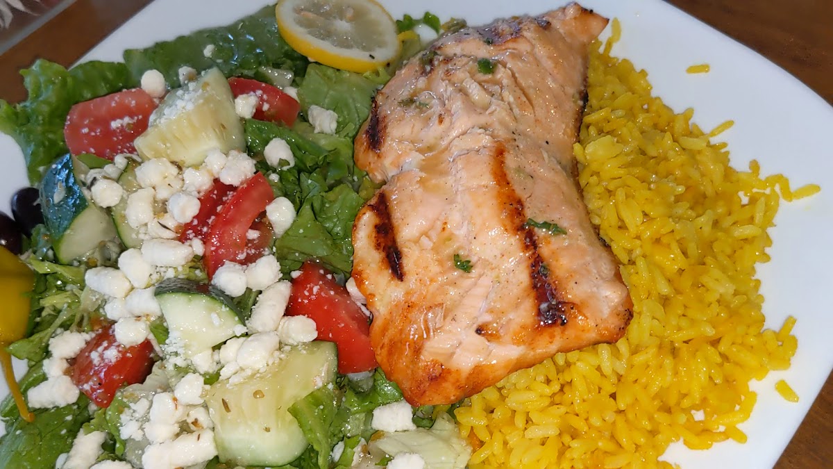 Salmon Lunch with Rice & Greek Salad